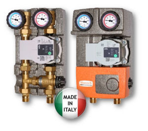 Modulo Idraulico a 2 Vie Miscelato per impianti di riscaldamento e raffrescamento MODVLVS M2 FIX3 DN20 3/4” adatto a circuiti termici miscelati a punto fisso Cod.20255R-F2-P8. Il Gruppo Idraulico viene prodotto in ITALIA, è dotato di valvola miscelatrice termostatica a punto fisso con campo di regolazione 45-70°C, circolatore sincrono ad alta efficienza Wilo Para 15/6 SC e può essere impiegato per potenze fino a 22 kW (con Δt 20 K) e portata massima di 1000 l/h. Il modulo ha un rating di PN10 con un fattore di portata (Kvs) di 2 e viene fornito in un elegante box isolante in EPP con connessioni filettate da 3/4” F. Interasse di montaggio 90 mm. In opzione è possibile abbinare il termostato di sicurezza bimetallico BRC. Sempre disponibile in pronta consegna, il modulo è soggetto ad extra costi in caso di non superamento del limite minimo fatturabile di 350 Euro